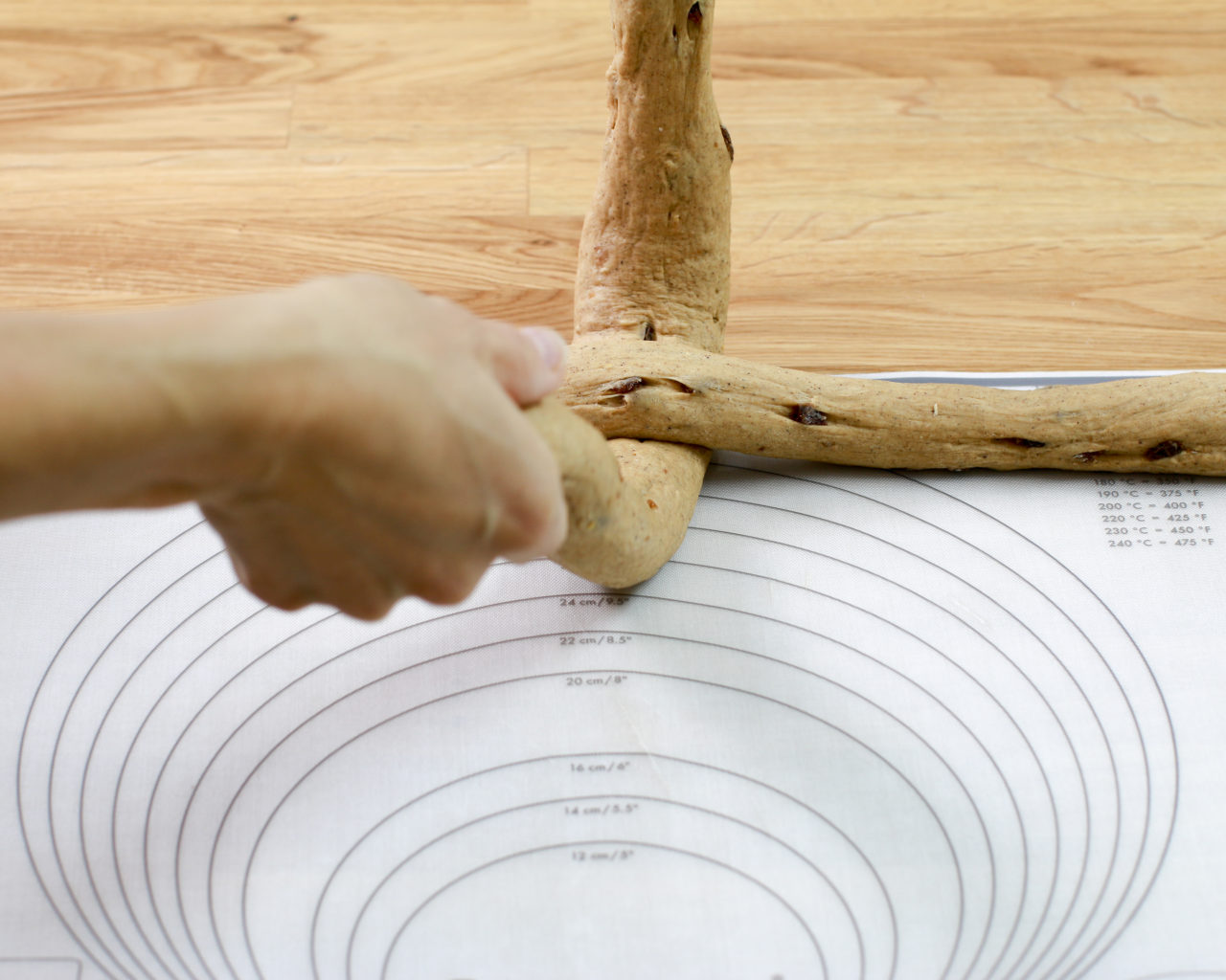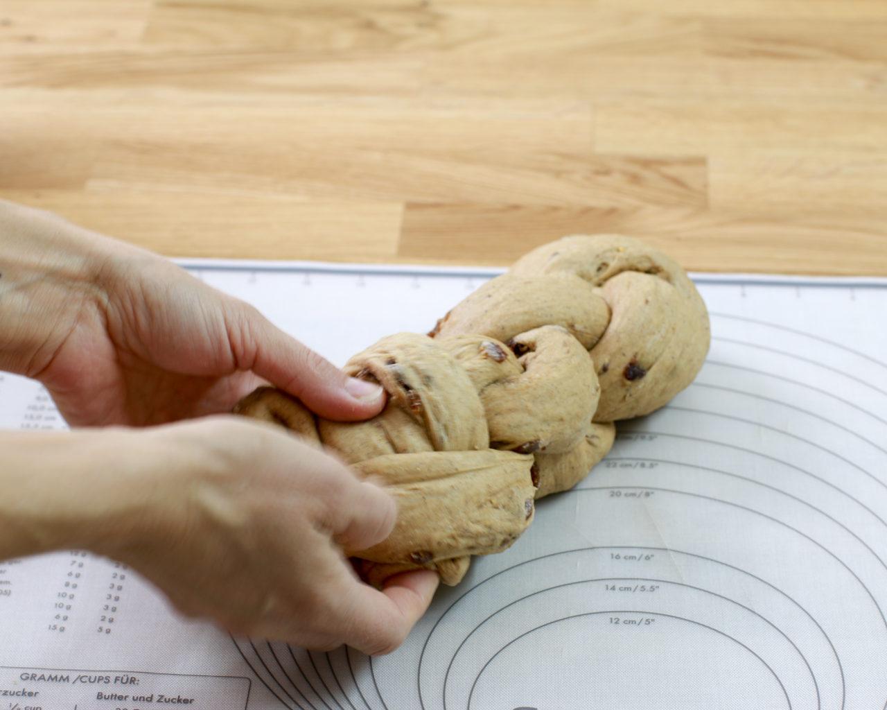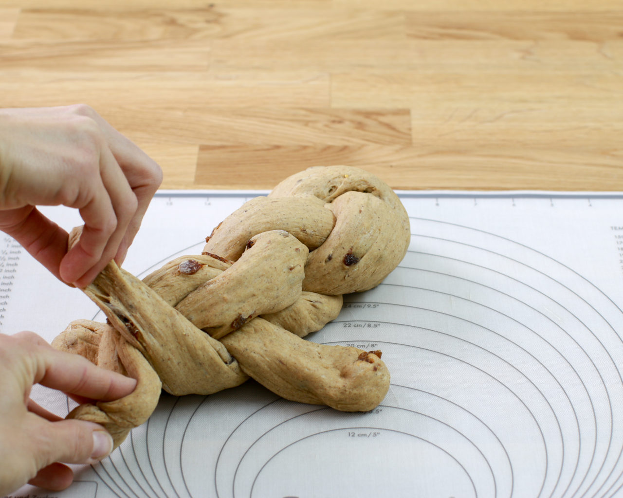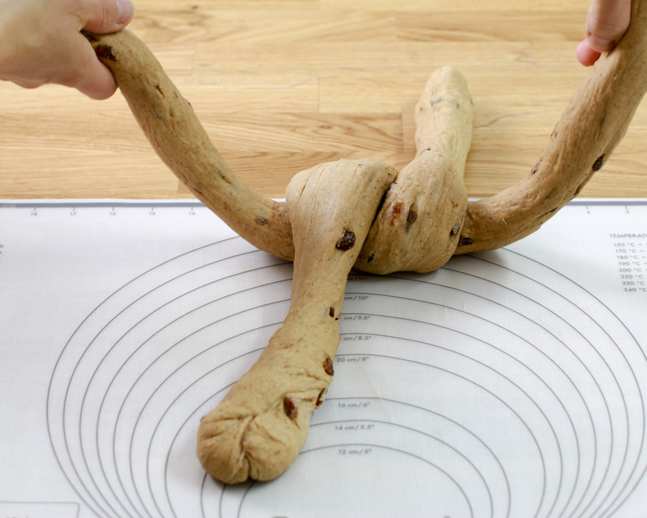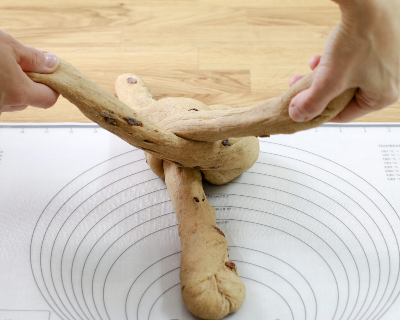- Konce pramenů překřižte a zastrčte pod vánočku.