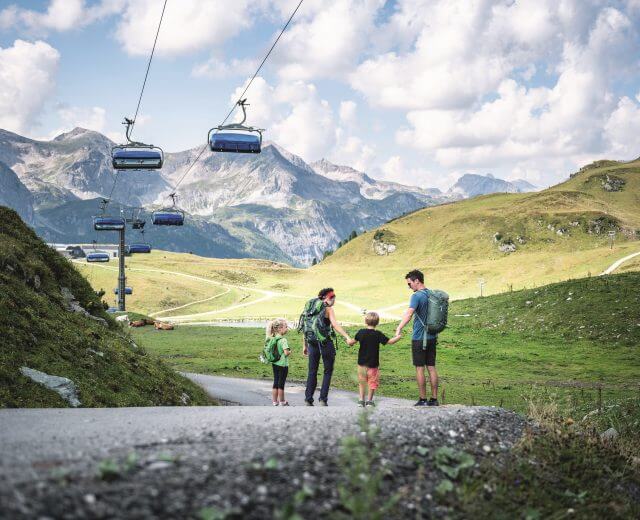 En familieudflugt i bjergene og nyde tid sammen – det er for eksempel muligt med de talrige gratis bjerg- og talture med Salzburgs bjergbaner: fra Flying Mozartop op på Grießenkar i Wagrain over Karbachalmbahn i Mühlbach am Hochkönig til Aineckbahn på Katschberg. Med SalzburgerLand Card kommer man ikke kun op på tinderne, men også i Wild- und Erlebnispark Ferleiten, til Woody-Bob Rollbobbahn i St. Martin am Tennengebirge eller i Felsentherme Bad Gastein.