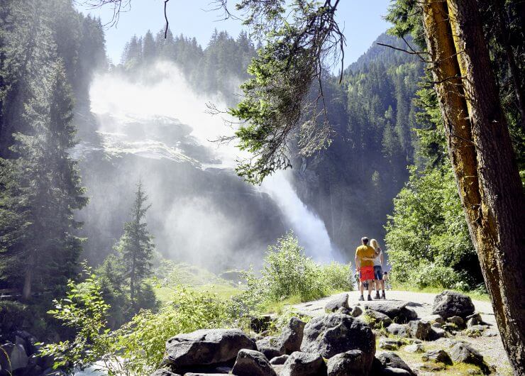 Glücklichmacher und Lebenselixiere „Wald und Wasser“ – Der Wald und das Wasser gehören zu jenen Elementen, die uns Menschen seit Urzeiten begleiten: Im Wald fühlen wir uns geborgen und beschützt, das Wasser entspannt und erfrischt zugleich. Beides trägt zur Erholung bei und sorgt auf ganzheitliche Weise dafür, dass Körper, Geist und Seele auftanken können. Die Krimmler Wasserfälle sind die höchsten Wasserfälle Europas und können auf bestens gesicherten Wegen aus nächster Nähe erwandert werden. Insgesamt gibt es im Nationalpark zehn Klammen, 26 Wasserfälle, rund 550 Seen und 279 Bäche.