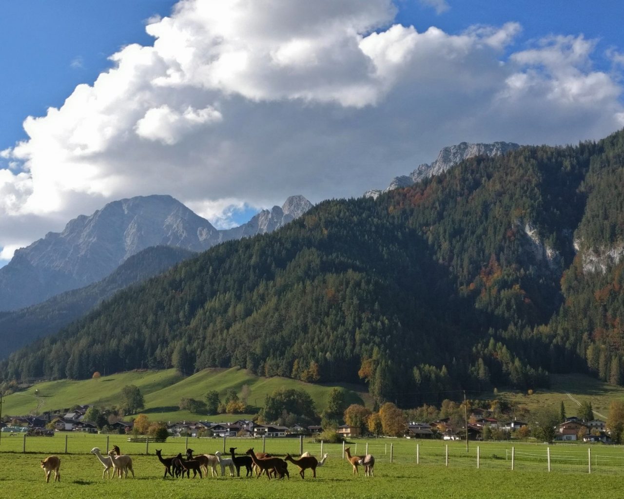 Alpakas gehören zur Gattung der Neuweltkameliden. Gewusst? Nein, ich auch nicht. Dass Monika Wimmer vom Strasserbauer dieses Wort so leicht von der Zunge geht, ist kein Wunder. Gemeinsam mit ihrem Mann Gerhard betreibt sie eine Alpakazucht in Saalfelden am Steinernen Meer und vermittelt mit viel Begeisterung ihr Wissen rund um die wolligen Tiere bei Hofführungen, Alpakatrekking und Kindergeburtstagen.