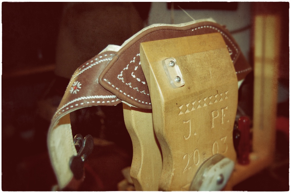 Und so traf ich ihn. Sepp, ein pensionierter Schuhmachermeister mit südtiroler Wurzeln, der sich aus Liebe zum Leder, großteils autodidaktisch, das Federkielspleißen und –sticken beibrachte. „Anfangs wollte mich niemand über die Schulter blicken lassen, doch in einem abgelegenen Tal in Südtirol fand ich nach langer Suche einen alten Mann, der mich bereitwillig in die Geheimnisse um dieses aussterbende Handwerk einweihte. Seitdem ist das Federkielsticken ein liebgewordenes Hobby von mir“, erzählt Sepp als ich ihn zum ersten Mal in seiner kleinen Werkstatt treffe. Ein leuchtendes Strahlen liegt in seinen Augen als er mir seinen Arbeitsraum zeigt: Antikes Schuster-Werkzeug liegt auf der alten Werkbank, rot-weiß karierte Vorhänge umsäumen die Fenster, Volksmusik ertönt aus dem alten Radio und der herbe Duft von Leder erfüllt die Luft. Genauso hatte ich es mir vorgestellt!