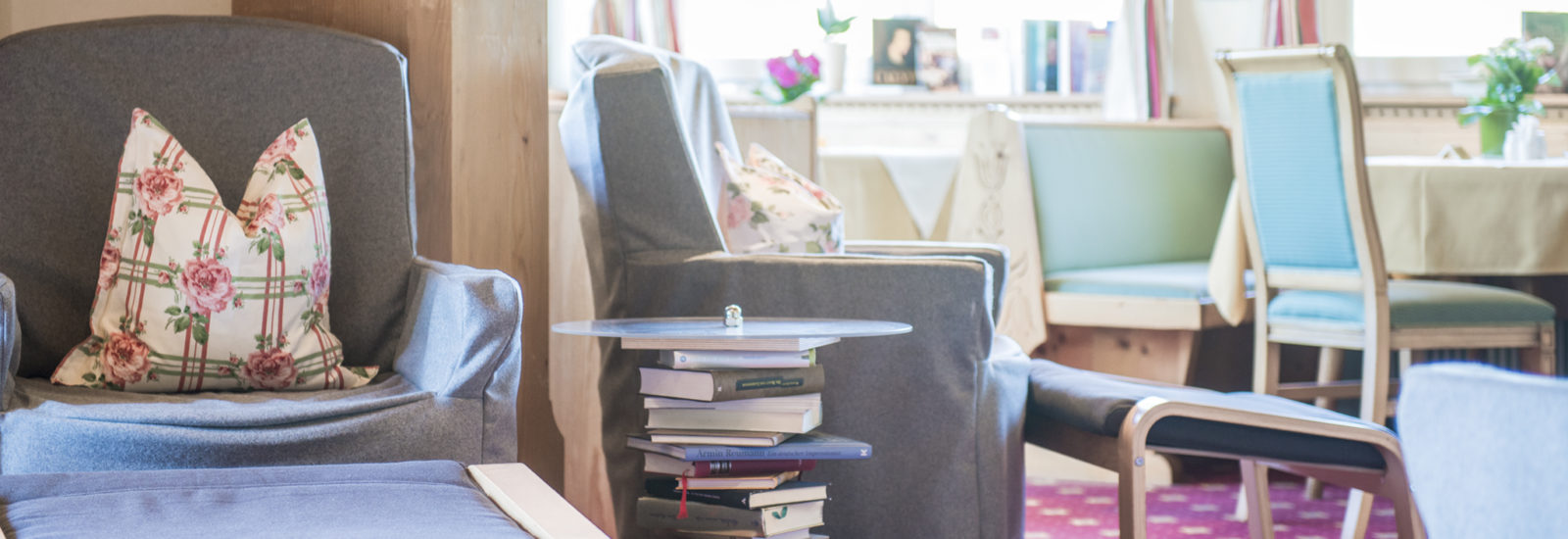 Die große Welt der Bücher und Geschichten ist im Bibliotel Sonnleitn im ganzen Hause zuhause: Ob in der Lobby, auf den Zimmern oder an eigens kreierten Leseorten im Freien – Bücher finden Sie überall.