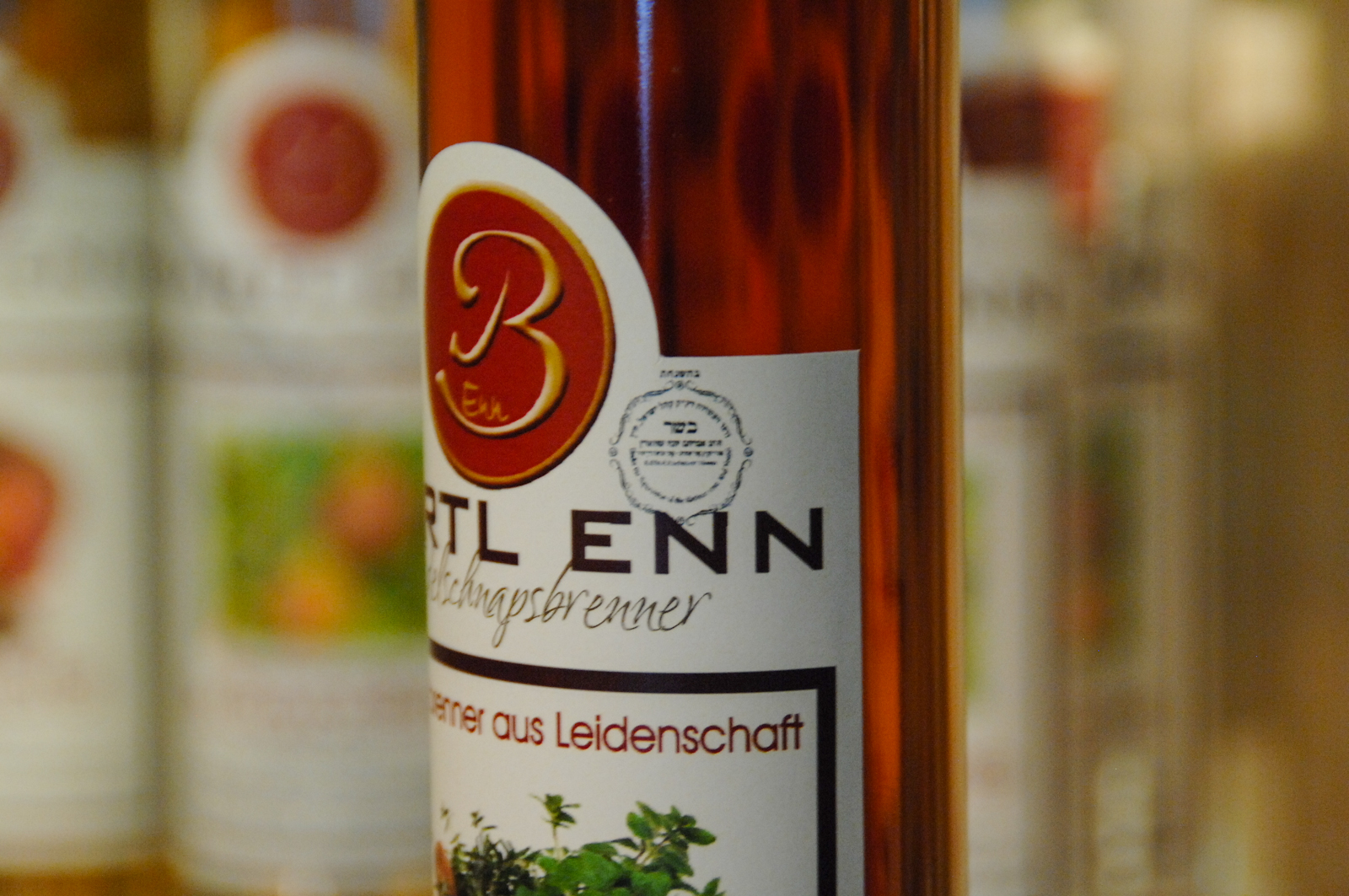 Während Bartl das Brenngerät spült und fein säuberlich reinigt, sehe ich mich im Verkaufsraum um. 30 Edelbrände und 20 verschiedene Liköre stehen in den Regalen. Vom Vogelbeerschnaps, mit dem alles begann, bis zu wohlklingenden Namen wie „Schwarze Kirsche“, „Alter Apfel“ oder „Dr. Guyot Birne“ (für den er übrigens die meisten Auszeichnungen erhalten hat). Aber auch exotische Geister finden sich unter den Flaschen: Zitronengrasgeist, Pistazienschnaps oder der „TEH-Kräuterbitter“. Dieser wurde rein aus regionalen Kräutern in Zusammenarbeit mit dem immateriellen UNESCO-Kulturerbe der „Traditionellen Europäischen Heilkunde“ kreiert. Auf einigen Flaschenetiketten finde ich Stempel in hebräischer Schrift und Bartl erklärt mir, während er gerade eingetroffene Besucher zum Verkosten einlädt: „Wir sind die einzige koschere Brennerei in Österreich. Das Koscher-Zertifikat gewährleistet, dass die verwendeten Früchte mit der Hand gepflückt wurden und den strengen Kriterien der sauberen Ernte unterliegen.“