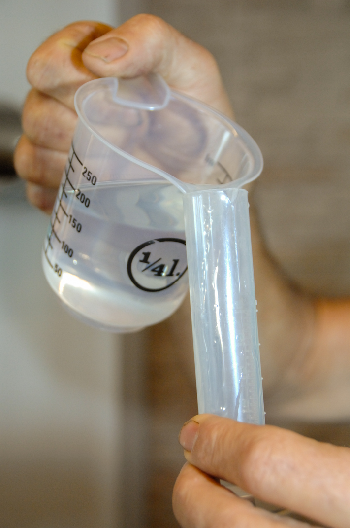 Noch ist es der ungenießbare Vorlauf, den Bartl laufend auf Geruch und Geschmack kontrolliert, damit er genau bestimmen kann, wann das Herzstück des Brandes, der Mittellauf, in den Behälter zu tropfen beginnt. Aus 640 Kilo Quitten erhält Bartl auf diesem Wege nur rund 16 bis 17 Liter feinsten Edelbrand doch Bartl meint: „Lieber halb so viel, dafür doppelt so gut! Das ist unser Motto und dadurch, dass wir nur den allerbesten Brand abschöpfen, wird jeder Schluck zum Geschmackserlebnis.“ Der Mittellauf wird vom Vor- und Nachlauf getrennt und die Maische, die nun vom Alkohol-Geist, befreit ist, wird kompostiert.