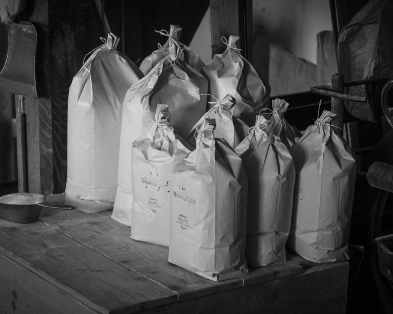 Das schon seit vielen Jahren, die Aufzeichnungen über die Mühle laufen bis 1638 zurück, sie existiert aber noch länger. So wie sie heute dasteht wurde sie 1938 renoviert und war damals eine der modernsten Mühlen im SalzburgerLand. Bis heute wurde nicht viel verändert und so mahlt das Juwel noch heute die Körner mit Pneumatikantrieb aus dem Wasser des Achartinger Wassers. Die Fuchsmühle ist eine der letzten Rückschüttmühlen in Europa. Dabei wird das fertige Mehl rausgenommen und der Rest noch einmal zum Mahlen zurückgeschüttet. Vieles passiert hier noch per Hand. „Beim Mahlen muss immer jemand vor Ort sein“, erklärt Frau Luginger.