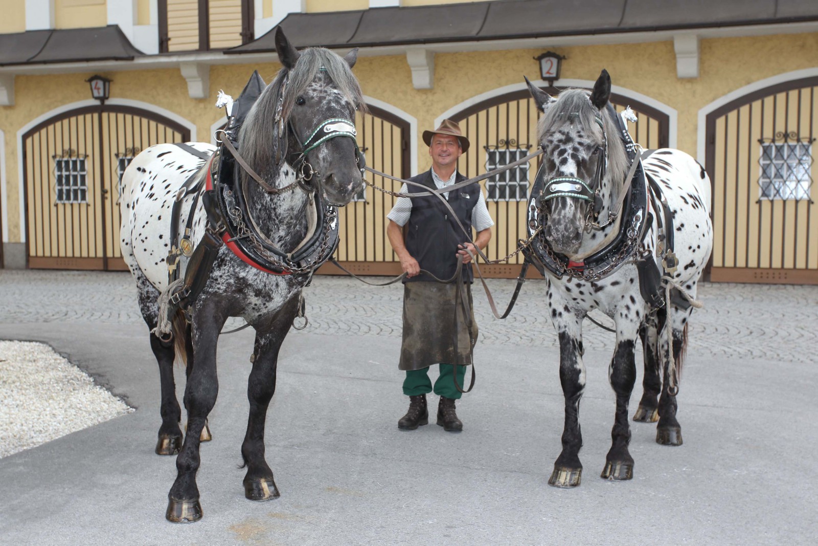 Bis zu 3,5 Tonnen ziehen die beiden Rösser durch verkehrsreiche Straßen. Damit da alles glatt geht, ist das Zusammenspiel zwischen Kutscher und Gespann besonders wichtig. Einer, der die Tigerschecken schon ein halbes Jahrhundert durch Salzburg dirigiert, ist Kutscher Herbert Schröder. Die tägliche Arbeit mit „seinen Rössern“ macht ihm heute noch genauso viel Freude wie ganz am Anfang. Jeden Tag steht er um sechs Uhr früh im Stall, füttert und putzt seine „Buam“ bevor er sie um halb acht Uhr vor die Kutsche spannt und mit der Auslieferung beginnt. „Bei den Pferden ist es wie bei uns Menschen, die sind auch nicht immer gut drauf“, weiß Herbert Schröder. Feinfühlig müsse man sein und darf auf keinen Fall grob mit ihnen umgehen. Denn die Pferde, das merkt man sofort, liegen dem Stiegl-Kutscher am Herzen. Sie sind nun mal keine Lastwägen, sagt er, bei denen man am Abend den Schlüssel umdreht und sich bis Montag früh nicht mehr darum zu kümmern braucht.