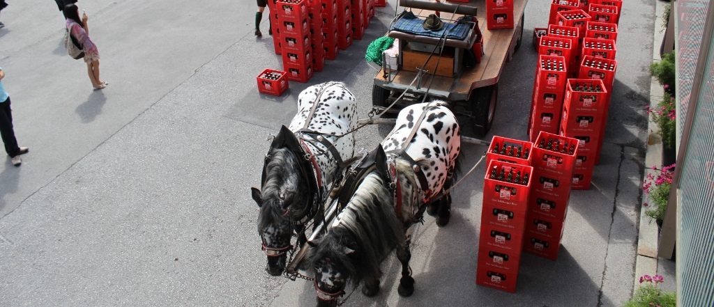 Ob strahlender Sonnenschein oder Salzburger Schnürlregen: Die gutmütigen Tigernoriker traben mit der Stiegl-Bierkutsche bei Wind und Wetter durch die Salzburger Stadtteile Maxglan, Riedenburg, Leopoldskron/Moos, Taxham und Wals/Siezenheim. Ihre Mission: den berühmten Gerstensaft an Gasthäuser und Lebensmittelgeschäfte ausliefern. „Für uns ist der Einsatz der Bierkutsche einfach eine gute Verbindung zwischen gelebter Tradition und Moderne und auch ein wichtiger, weil authentischer Teil der Markeninszenierung“, erklärt Dr. Torsten Pedit, Marketingleiter bei Stiegl. Früher zogen Ochsen die Bierkutschen in der Salzburger Innenstadt, bis zum Zweiten Weltkrieg wurden auch braune, schwarze und fuchsfarbene Pferde vor die Brauereikutschen gespannt. Seit 1945 kutschieren ausschließlich Tigerschecken aus österreichischer Zucht die bierige Last durch die Stadt Salzburg. Die prachtvollen Stiegl-Rösser sind übrigens immer Hengste und repräsentieren den ganzen Stolz der Brauereitradition.