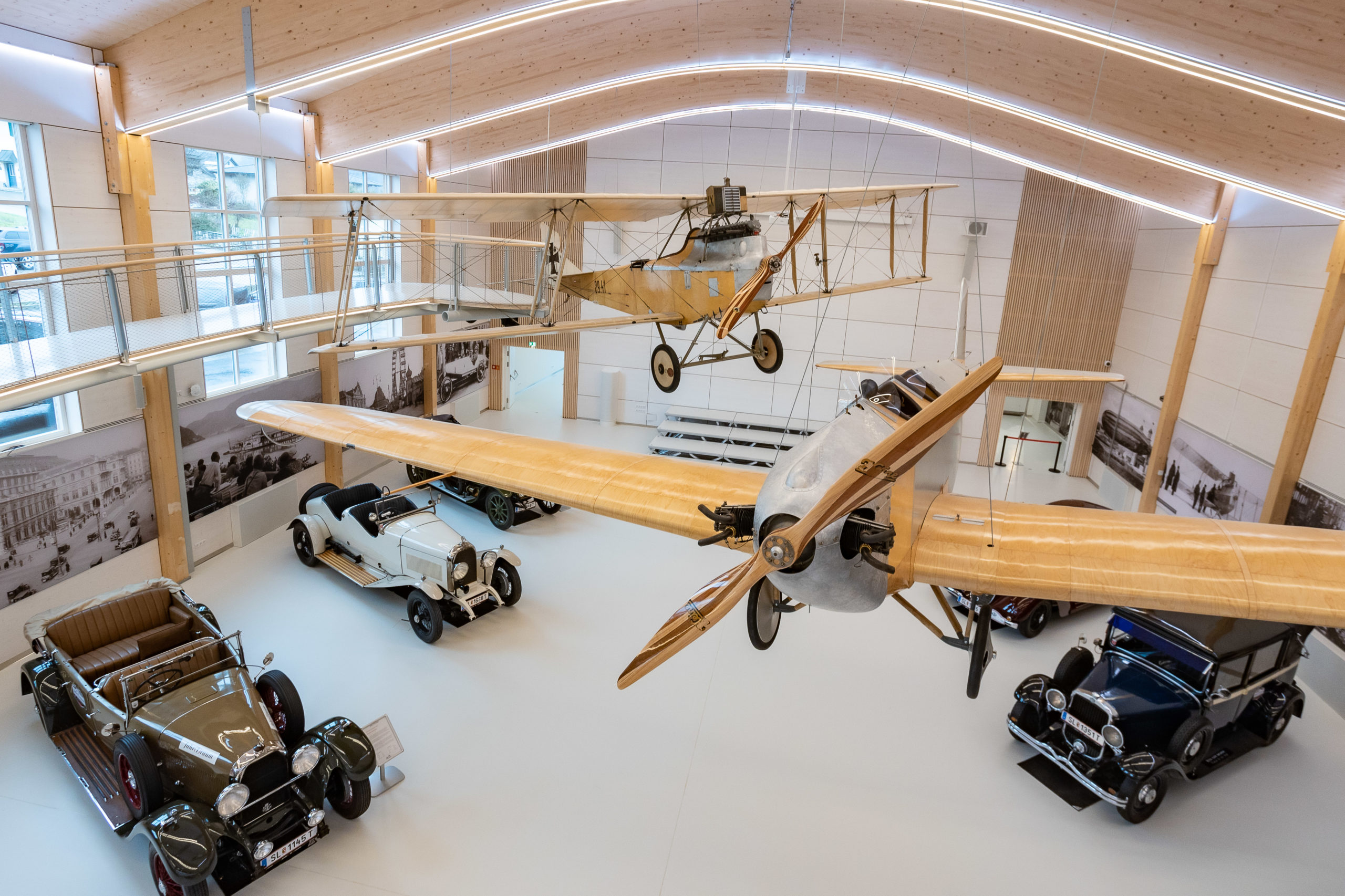 Die historischen Flugzeuge Hansa-Brandenburg C1 und Klemm L20 sind die Glanzstücke der neuen Flug- und Veranstaltungshalle, welche im Jänner 2023 im fahr(T)raum in Mattsee eröffnet wurden. Diese schweben von der Decke und bieten eine einzigartige Atmosphäre.