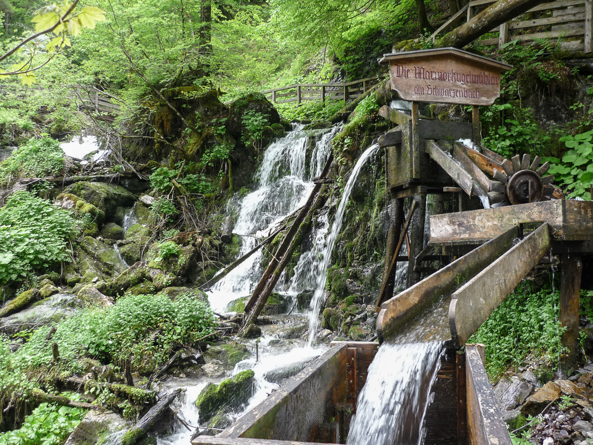 Nächste Etappe ist der Schwarzenbachfall, dessen herabdonnernde Wassermassen man von einem eigens errichteten Steig aus gut beobachten kann.
