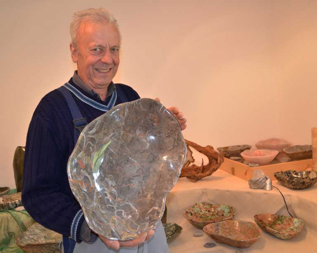 Andreas Hofer bearbeitet das Gestein so, dass versteinerte Hölzer, Muscheln, Fische und Korallen auf dünnwandigen Schüsseln, stabilen Tischplatten, auf Kugeln und schmucken Vasen zum Vorschein kommen. Sogar der Vorplatz des Hauses in Scheffau am Tennengebirge und die Wege sind mit geschliffenen und bunten Steinen ausgelegt. Sie stammen vor allem aus der nahen Lammer. Im Schauraum stellen Agnes und Andreas Hofer ihre kunstvollen Arbeiten aus. Besucher sind unter Voranmeldung 0664/1328322 immer willkommen.