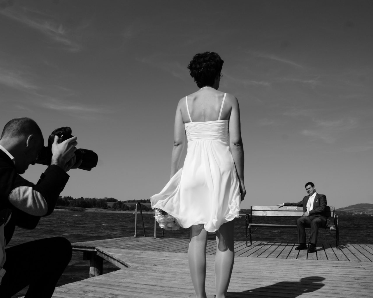 Ein wenig „Arbeit“ wartet aber noch auf die Jungvermählten, denn was wäre eine Hochzeit ohne Hochzeitsfotos. Romantische Motive gibt es rund um die Seeburg genug. Und spätestens beim Fotoshooting am Badesteg des nahen Wallersees, barfuß im Brautkleid, Hand in Hand mit dem geliebten Partner, den glänzenden Ehering am Finger mit Blick auf das glitzernde Blau des Wassers wissen beide, sie hätten sich keinen schöneren Ort zum Heiraten aussuchen können.