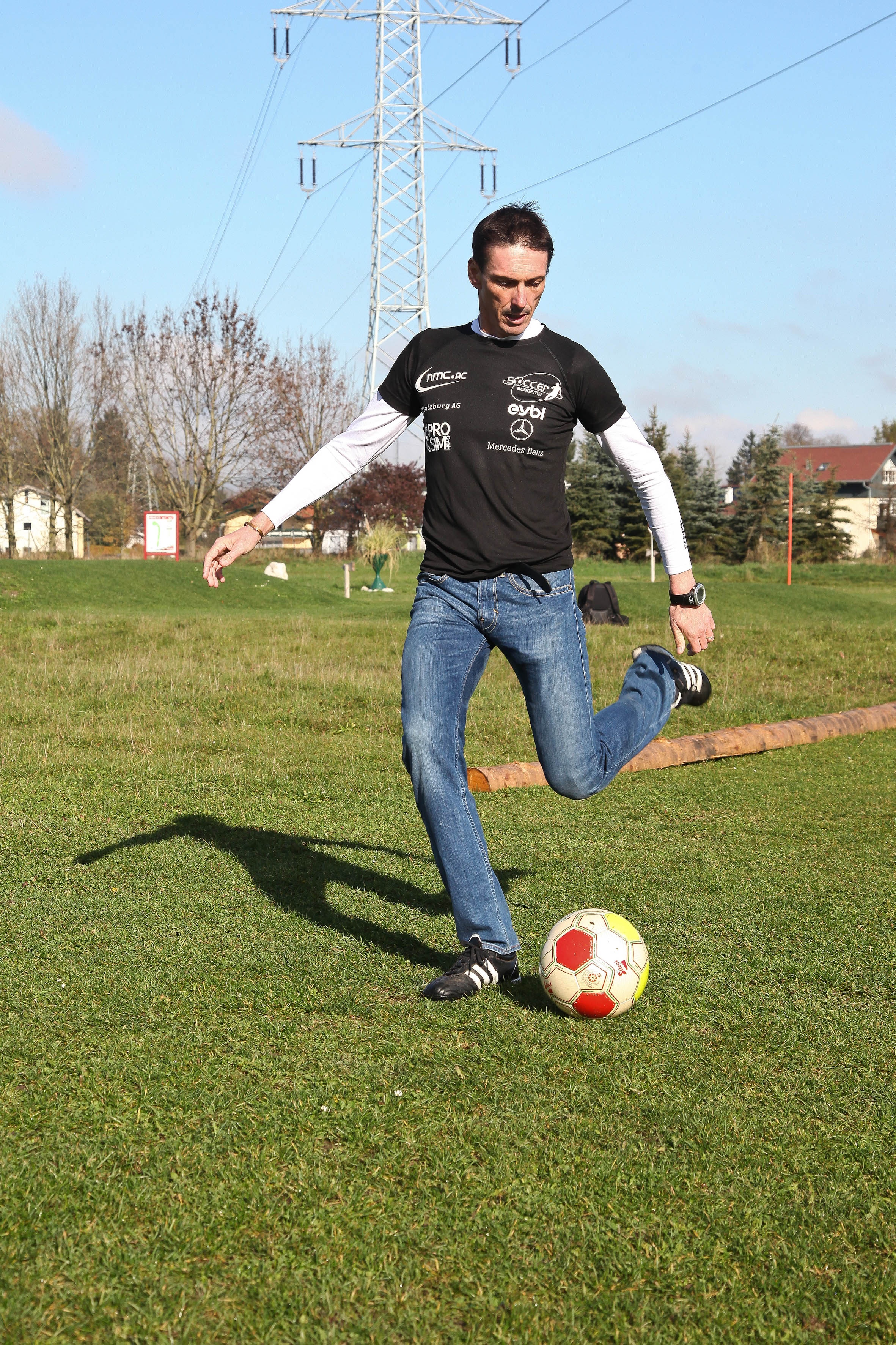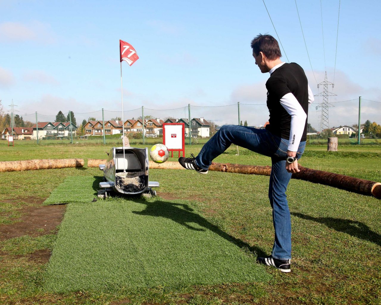 Wir haben die Trendsportart natürlich dem Praxistest unterzogen. Ein Match zwischen dem ehemaligen Fußballtrainer Roland Kurz und Full Qualified Golfprofessional PGA of Austria Thomas Neureiter, sollte klären wer der bessere Fußballgolfer ist. Zu Anfang des Matchs fragen wir die beiden wie sie ihre Chancen einschätzen. Roland glaubt, seine Pass- und Schusstechniken im kurzen Spiel kommen ihm beim Fußballgolf zugute. Thomas sieht sein durch den Golfsport geübtes Course Management als seine Stärke. Auf den 18 Bahnen geben die beiden alles. Und doch sieht man schon bald einen kleinen Vorteil seitens Roland. „Ich hatte eigentlich auf Taktik gesetzt. Hab mich dann aber schon bald an den Tipp von Roland gehalten – einfach mal draufhauen und nicht zuviel nachdenken“, sagt Thomas.