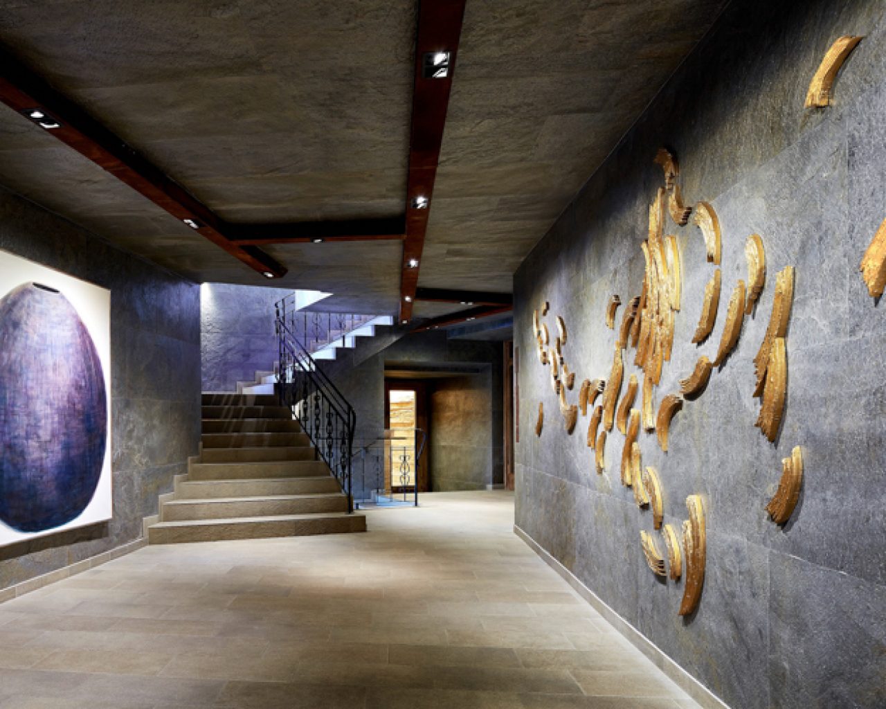 Mit gerade 18 Jahren übernahm Sepp Fersterer Hotel und Alm, als sein Vater überraschend verstarb. „Ich bin mehr oder weniger in der Toskana aufgewachsen, wo meine Familie einen Weinberg und Olivenhaine besitzt. Dort habe ich auch meinen Beruf als Koch und Kellner erlernt und wollte eigentlich gerade ein eigenes Restaurant in der Nähe von Florenz aufmachen. Doch dann übernahm ich 2003 die Führung unseres Hotels und der Hinterhagalm – anfangs eine harte Schule. Doch ich legte meine ganze Kraft und Energie in diese Arbeit und in den Jahren 2008 und 2009 erfolgte der Umbau in das heutige ,Art & Ski-In Hotel Hinterhag’. Ich mag keine weißen Wände, deshalb ist das ganze Haus in Altholz gehalten“, bekennt der dynamische Hotelier. Der künstlerische Einfluss seiner Mutter ist auch hier schon von weitem spürbar, denn die „Klotzmenschen“ säumen die letzten Kurven bis zum Hotel. Beim Betreten des Foyers überrascht der Anblick eines riesigen Spiegelbaums und zieht die Besucher in seinen Bann. An den Zweigen des raumfüllenden Ahornbaums hängen unzählige kleine Spiegel, die sich in der warmen Luft drehen und das einfallende Licht im Raum verteilen. Bequeme Holzliegen laden ein, sich zu entspannen, hineinzuschauen und loszulassen. Evi Fersterers Werke und Ausstellungen anderer zeitgenössischer Künstler begleiten die Gäste im Hotel auf Schritt und Tritt.
