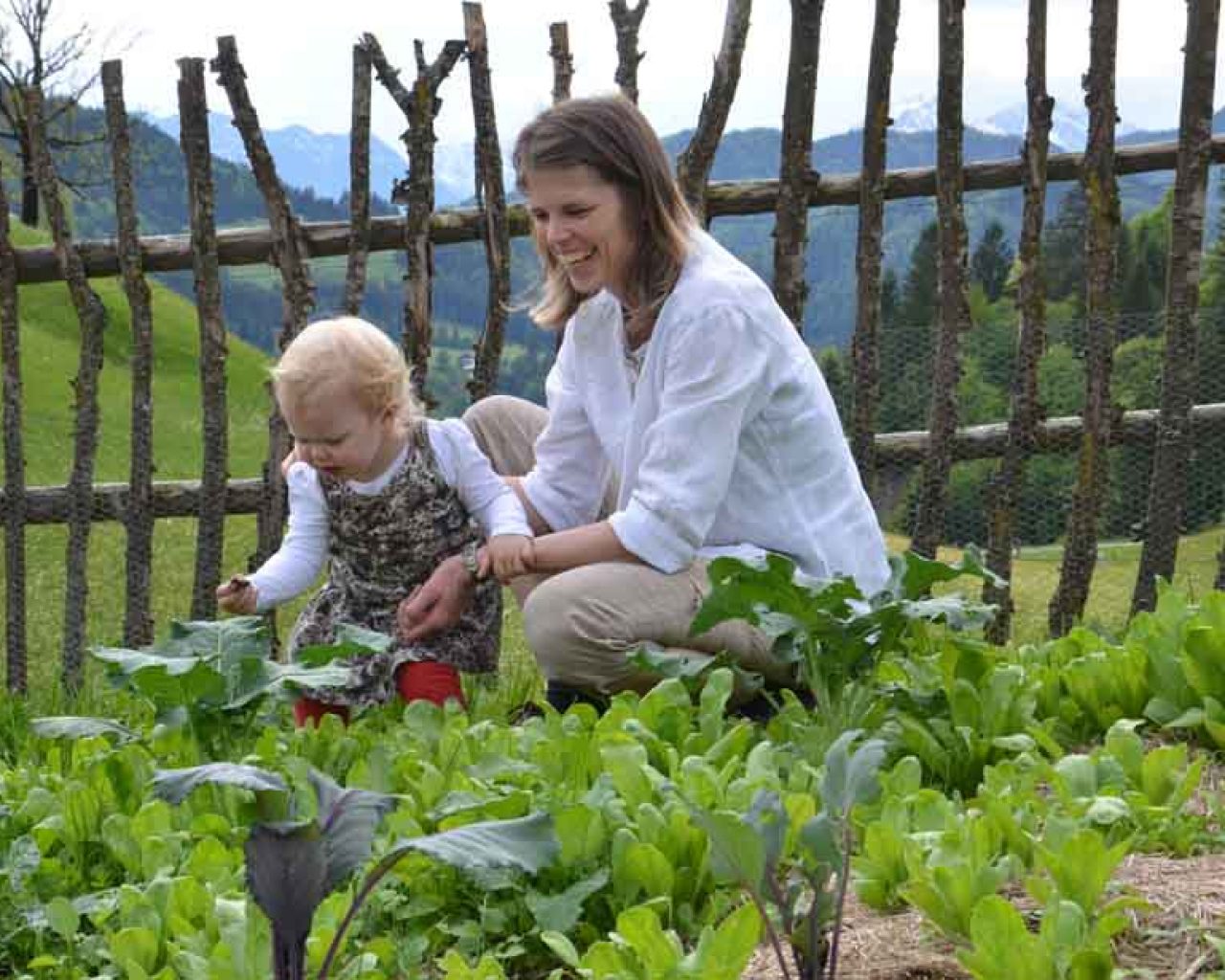 Sonnenschein. Auf den Bergen des Tennengebirges und des Dachsteins strahlt Schnee. Wiesen, Sträucher und Bäume malen unzählige Grüntöne mit Blumenfarbtupfern in die Frühlingslandschaft. Der Wiesbachhof in Abtenau liegt in dieser idyllischen Gegend im Lammertal. Petra und Hans Kronreif führen das Wiesbachgut als Biobauernhof.