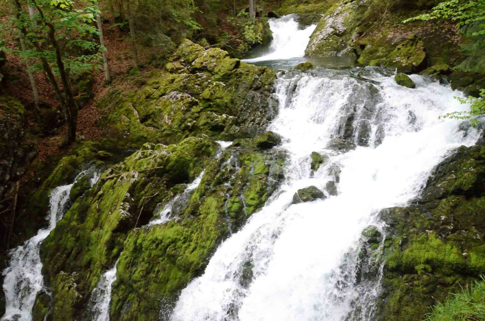 Der Schnee ist noch nicht ganz geschmolzen, schon stürzen kleine Wasserfälle aus Felsspalten und Höhlen auf der Nordseite des Tennengebirges zu Tale. Der Tricklfall im Abtenauer Ortsteil Au macht durch sein Getöse und Brausen von weitem auf sich aufmerksam. Gleich mehrere Quellen sprudeln aus den Höhlen auf der Nordseite des Tennengebirges. Das Wasser sammelt sich und schlängelt als Bach zu Tale. Vom Tricklfall führt ein schmaler Steig entlang des Gebirgsstockes weiter zum nahen Dachserfall. Auch er tost und rauscht bevor er zwischen den Ästen der Bäume sichtbar wird. Besonders beeindruckend ist der Winnerfall. Er sprudelt aus den Ritzen, Spalten und Löchern des Tennengebirges in Oberscheffau. Vor allem zur Zeit der Schneeschmelze oder nach heftigen Regenfällen präsentiert er sich mit seiner ganzen Wucht. Ansonsten ist er ein relativ zahmes Gewässer oder – versiegt ganz. Von Oberscheffau ist der grandiose Wasserfall leicht erreichbar. Der Wanderweg ist mit liebevoll auf Steinen gemalten Herzen gekennzeichnet. Er ist abwechslungsreich gestaltet: Ein Herzlabyrinth, gemütliche Bänke zum Rasten, ein Hörrohr und ein großer Bilderrahmen mit Durchblick. Der Weg führt entlang des Schwarzenbaches direkt zur alten Mühle. An Sonn- und Feiertagen klappert sie und lädt zur Einkehr bei einer gemütlichen Jause und idyllischen Aussichten ein. Vorbei an der liebevoll restaurierten alten Mühle schlängelt sich der Weg bergauf. Der Winnerfall ist nun schon sehr nah. Die kleinen Wasserfälle des Schwarzenbaches entlang des Weges sind eine Augenweide. Nur mehr ein kleines Stück bergauf und dann lauschen: Wenn es braust und tost, dann führt der Winnerfall Wasser. Es kann aber auch mucksmäuschen still sein. Kein Wasserfall. Auch das kommt vor. Weitere Informationen beim Alpenverein Salzburg.