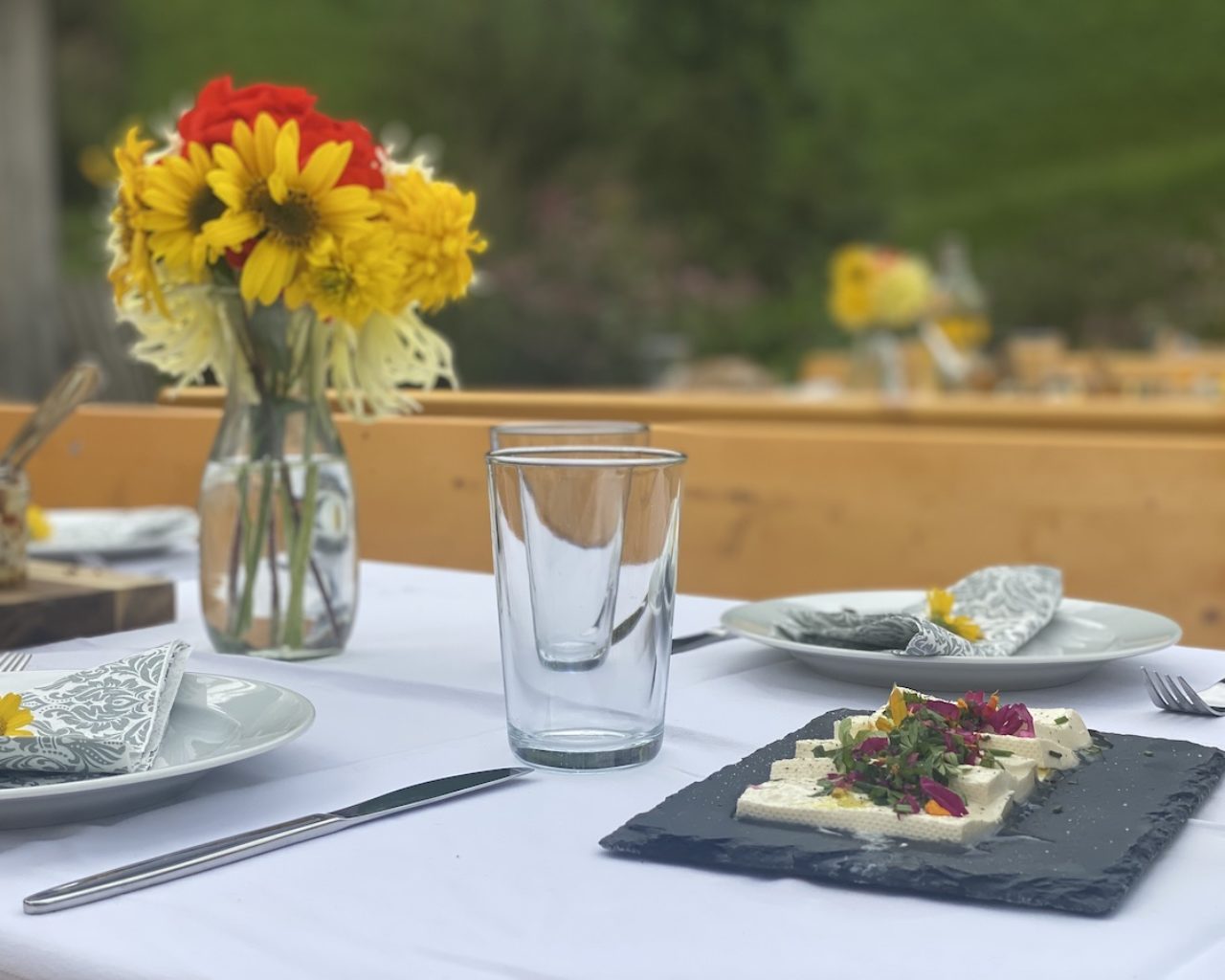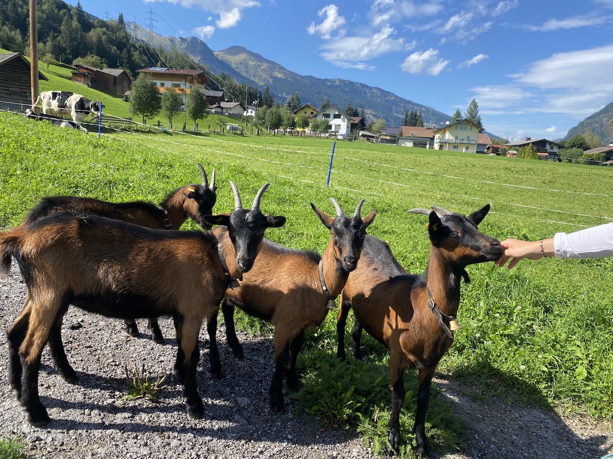 Treffpunkt zur kulinarischen Hofwanderung ist der TVB Bad Hofgastein, wo wir uns gemeinsam mit Seminarbäuerin Heidi Huber zur ersten Station, ihrem eigenen Hof, dem Mühlhof begeben. Dort zeigt sie ihren Hof mit Kräutergarten, Seminarküche und Tieren. Bei der Führung erzählt Heidi übers Hofleben im Allgemeinen und über ihre Kräuterliebe im Speziellen. Die Seminarbäuerin ist auch Kräuterpädagogin und teilt ihr großes Kräuterwissen und den Einsatz von Ringelblume und Co. gerne mit Besuchern – ob als Heilmittel oder für die Gaumenfreuden, das Einsatzgebiet ist groß. Nach der Besichtigung gibt es eine gute Jause mit wundervollem Ausblick auf die Gasteiner Bergwelt. Auf den Tisch kommt selbst gebackenes Brot und eine große Auswahl an selbst gemachten Käsespezialitäten mit Kräutern.