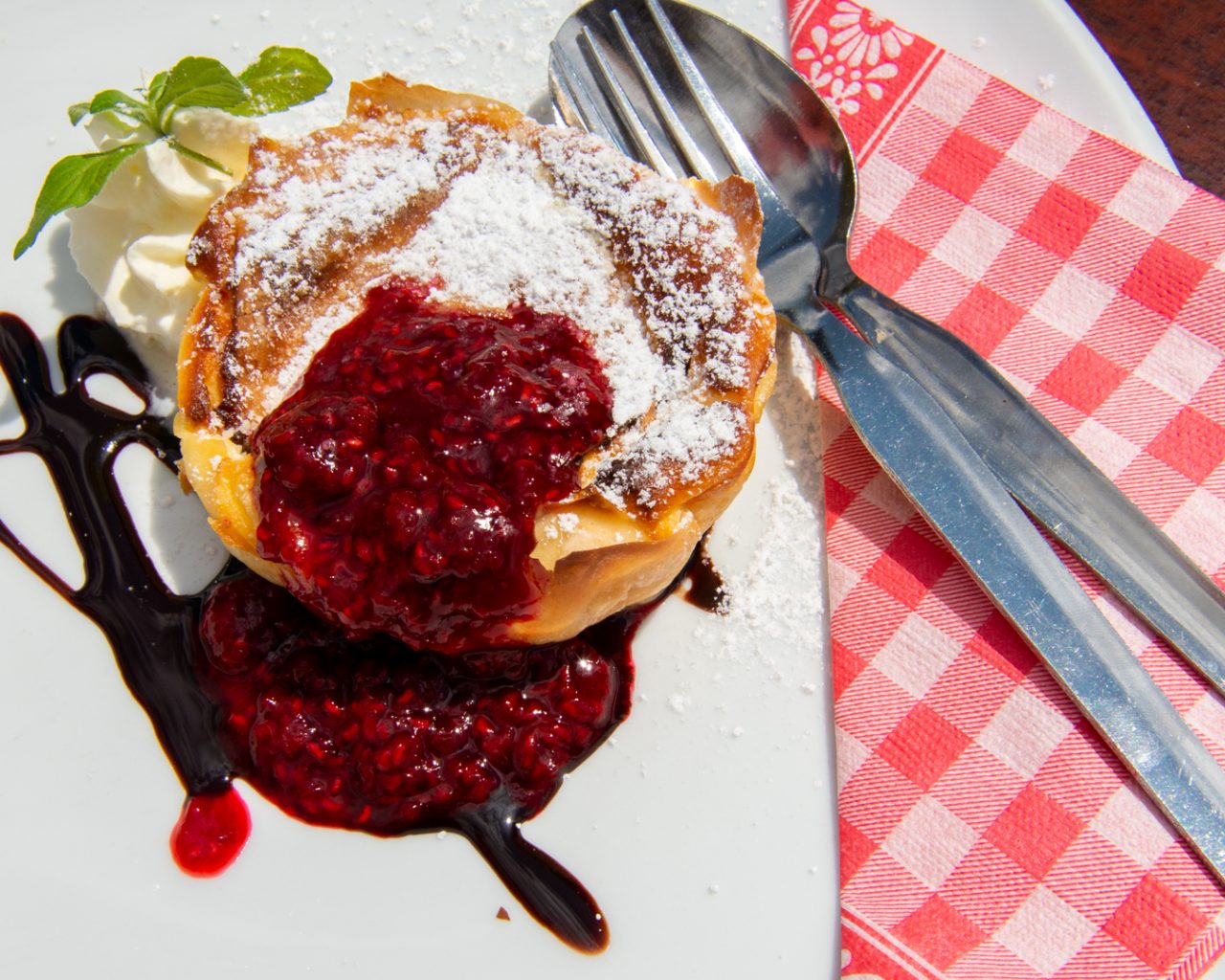 So wandern wir von Gang zu Gang – mal süß als Milchrahmstrudel oder Schwarzbeer-Pofesn, mal deftig als Käseplatte oder Brettljause. Viele Zutaten sind von den Hüttenwirten selbst erzeugt oder stammen zumindest aus der Region. Und das schmeckt man! Auf einigen Hütten wird noch gekast und dort und da dürfen wir einen Blick in die Kaskammer werfen, können im Hofladen selbstgemachte Almprodukte einkaufen, erfahren Hüttenanekdoten oder bekommen eine kleine „Schnalzer“-Einlage vorgeführt. Zu jedem Gang wird übrigens auch das passende Getränk – vom Kaffee, dem kühlen Bier, frischer Milch bis zum selbst angesetzten Hollersaft und Schnapserl – serviert. Ans morgendliche Magenknurren kann sich mittlerweile keiner mehr erinnern und Hans gibt uns reichlich verlockende Wandertipps, um die sieben Gänge schon in den nächsten Tagen bei Touren rund ums Gasteinertal wieder abzutrainieren. Fast zu kurz ist der Aufenthalt auf den Hütten, denn jede urige Alm verspricht unzählige Geschichten, für die zu erzählen heute die Zeit fehlt. Dort ist vor einigen Jahren knapp eine Lawine am Haus vorbei gedonnert, hier könnte die Hüttenwirtin vom Kasen erzählen und da wird schon seit Jahrzehnten der Almsommer am Nassfeld verbracht. Schweren Herzens, reichlich gesättigt und mit dem festen Vorsatz, nach Sportgastein zurück zu kehren, um all diese Geschichten zu erfahren, beenden wir nach dem siebten und letzten Gang unsere kulinarische Almwanderung.