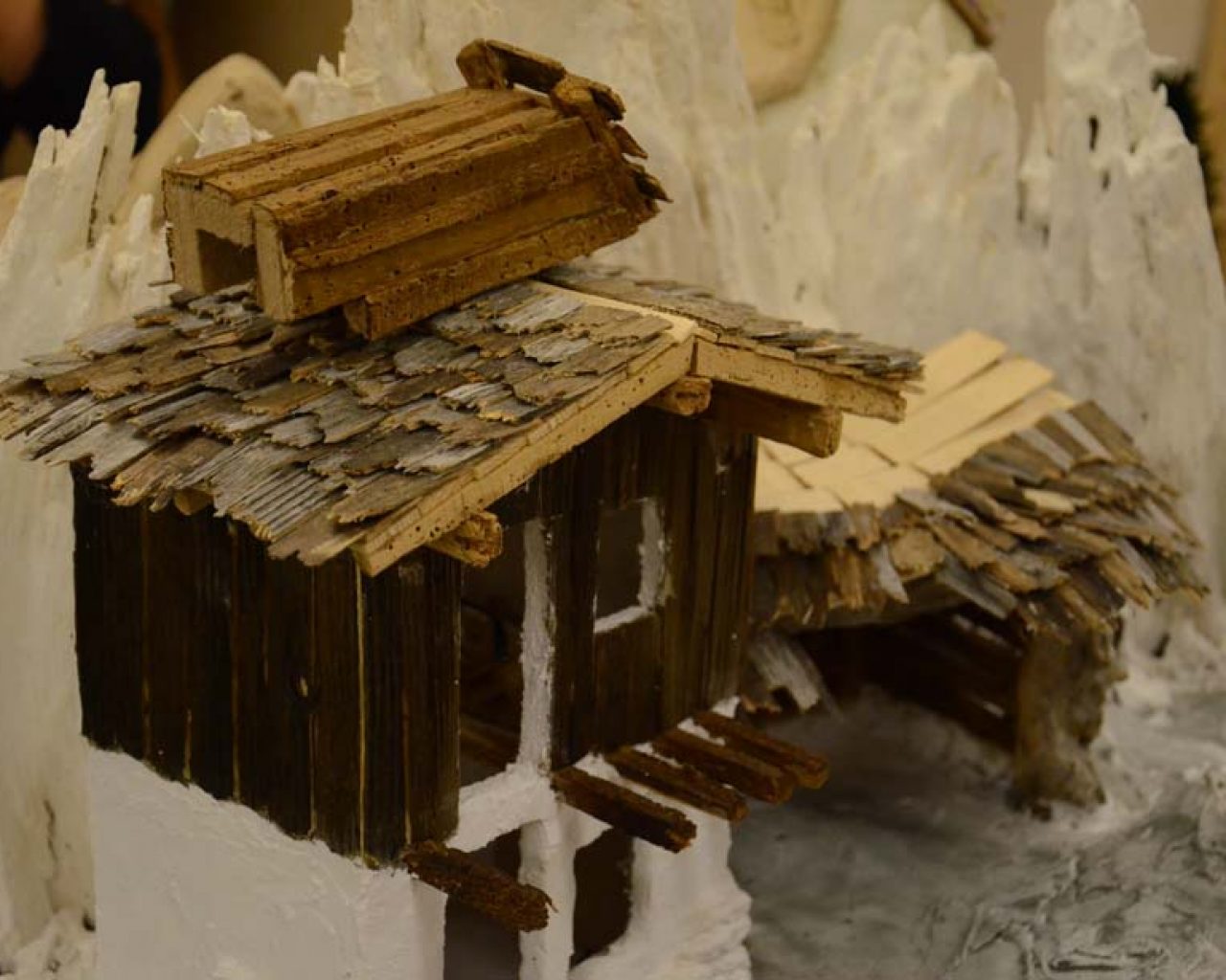 In den Werkstätten der Salzburger Krippenbauvereine gestalten Frauen und Männer ihre eigene Krippe. Krippenbaumeister stehen ihnen jedes Jahr mit Rat und Tat zur Seite. In Abtenau leitet Peter Pindl, seines Zeichnes Obmann des örtlichen Krippenbauvereines, jedes Jahr den Krippenbaukurs mit rund 15 Teilnehmerinnen und Teilnehmern. Für die Bauwerke verwenden die Handwerker Wurzeln, Rinden, Schwämme, altes Holz und getrocknete Blumen. „Wir finden die Naturmaterialien beim Wandern im Sommer und im Herbst. Lärchenrinden werden zum Beispiel zu zerklüfteten Felsen und getrocknete Pflanzen zu Bäumen. Wenn alte Bauernhäuser oder Almhütten abgerissen werden, holen wir uns das Holz für die Schindeln, für Türen und Balkone“, sagt Krippenbaumeister Pindl.