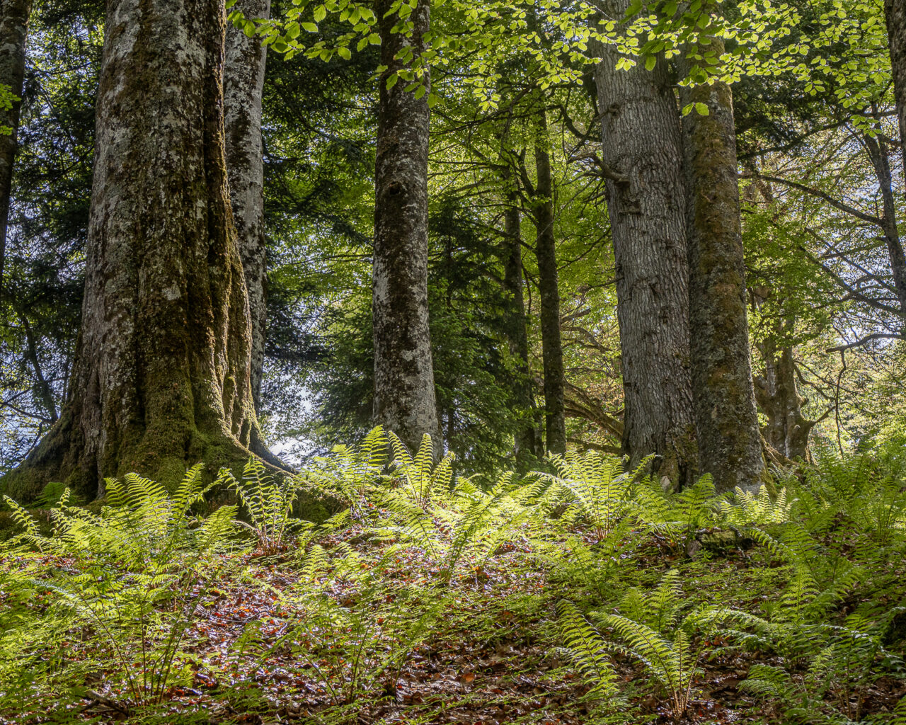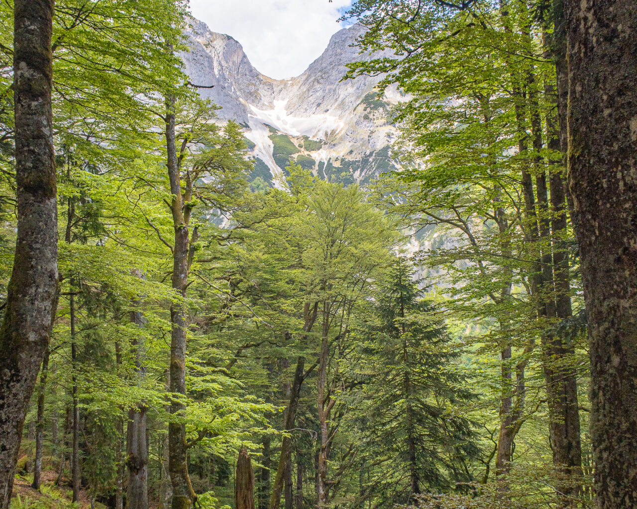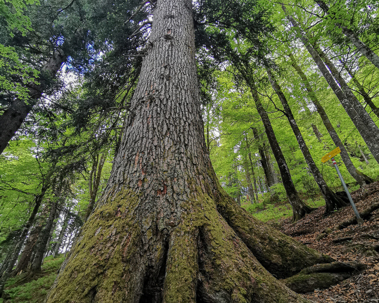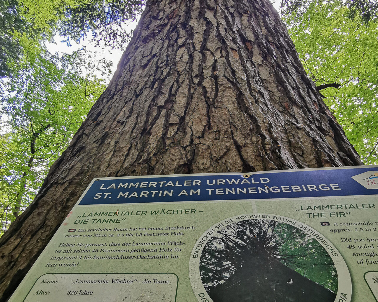 Riesengroß sind sie, mächtig und alt – die Bäume im Lammertaler Urwald. In dem rund 10 ha großen Naturwaldreservat wachsen Tannen, Fichten, Buchen und Lärchen von gewaltigen Ausmaßen. Vom Lammertal über die Spiessalm gelangt man in gut einer Gehstunde zu den Baumriesen.