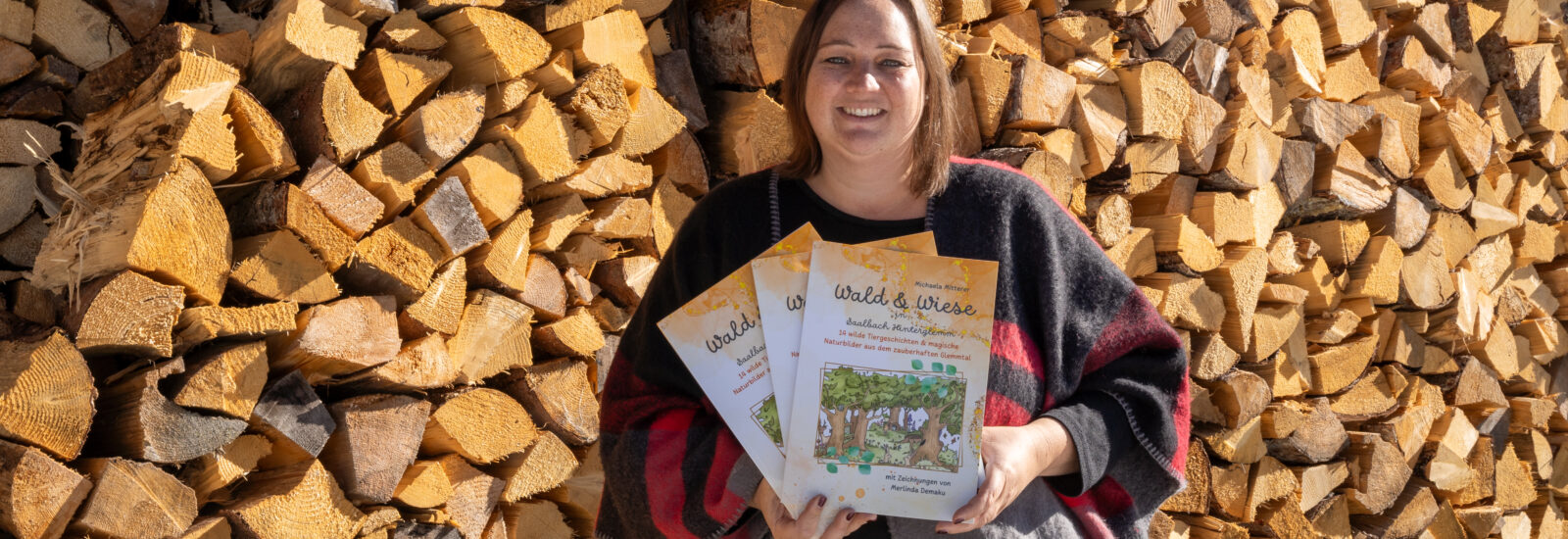 Eigentlich hatte Michaela Mitterer schon den Plot für einen Krimi im Kopf, doch neben ihrem selbstständigen Schreiben als Content Creator vermietet sie mit ihrem Mann Peter auch eine wundervolle Selbstversorger-Almhütte auf der Sonnenseite von Hinterglemm und kümmert sich um die beiden Hunde Easy und Bruno, die Mangalitza Schweine und eine Schar Hühner. Zu wenig Zeit blieb da für das Niederschreiben des Krimis. Erst ihre kleinen Nichten Tabea und Laura brachten den Stein des Schreibens ins Rollen. Sie erzählt: „Meine Großmutter Lisi hatte uns Kindern immer Geschichten aus dem Wald erzählt – von Füchsen und Rehen. Diese Geschichten habe ich aus dem Gedächtnis nacherzählt und den Protagonisten mit viel Fantasie neues Leben eingehaucht. So entstand die Lieblingsgeschichte meiner Nichten – die kleine Gams Mimi bei ihrem Weitsprung-Abenteuer im Talschluss. Kurzerhand schrieb ich die Geschichte nieder – und es folgten gleich 13 weitere. Alle handeln von Tieren in Saalbach Hinterglemm, die ganz alltägliche Dinge erleben – ohne großes Drama. Und im Eigenverlag brachte ich dann im Sommer 2023 mit diesen Geschichten aus dem Glemmtal mein erstes Kinderbuch mit Illustrationen von Merlinda Demaku heraus. “