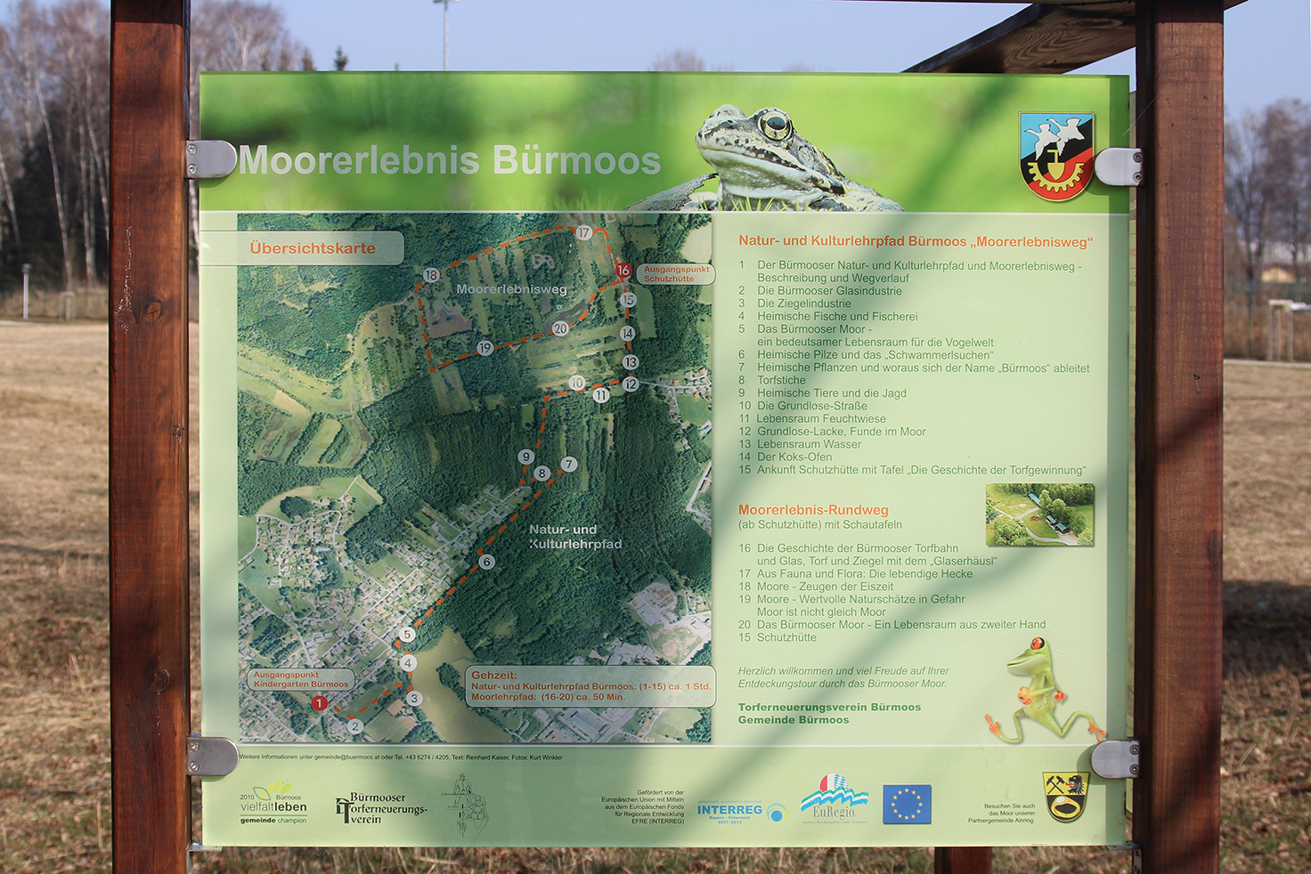 Auch für kulturell- und historisch-Interessierte hat der Rundwanderweg so einiges zu bieten. Die zahlreichen, übersichtlich gestalteten Schautafeln bieten nicht nur einen kompakten Überblick über Flora und Fauna des Moorgebiets, sondern zeigen auch auf, wie eng die Geschichte der Gemeinde Bürmoos mit dem Moor verbunden ist. Ob Torfstecher, Glasbläser oder Ziegelbrenner – sie alle waren auf die Erträge dieser rauen Landschaft angewiesen. Im neuen Torf-Glas-Ziegel-Museum in Bürmoos, nahe des Rundwegs, können zahlreiche Exponate bestaunt werden, die die Geschichte der Torf-, Glas- und Ziegelindustrie bis zur Gründung des Industrieorts Bürmoos Ende des 19. Jahrhunderts belegen. Aktuell werden Quiztafeln vorbereitet, die in Kürze entlang des Moorerlebnis-Rundwegs aufgestellt werden und Fragen zu heimischen Amphibien, Reptilien, Vögel und Blumen beinhalten.