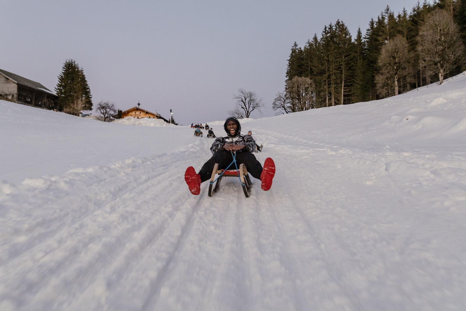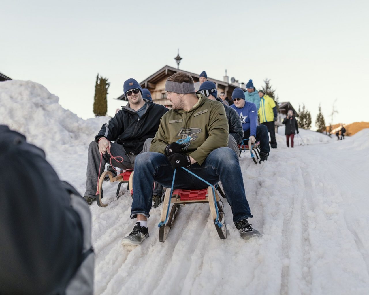 Heiß her ging es auch bei der abendlichen Schneeballschlacht und Rodelpartie vom Berggasthof Sattelbauer hinunter ins Tal, ehe der Tag und die Reise in die Salzburger Berge bei einem gemütlichen Hüttenabend mit traditionellen alpinen Klassikern wie Kasnockn und Kaiserschmarrn im Restaurant & Bar Dampfkessel in Flachau ausklang – dabei durfte ein bisschen Apres Ski Feeling zum Abschluss natürlich auch nicht fehlen.