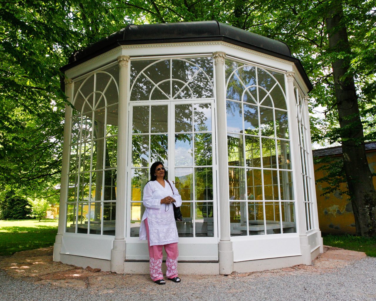 Auf dem Weg nach Hellbrunn, zu dem Pavillion in dem Liesl und Rolf das berühmte Duett „Sixteen going on Seventeen“ singen, erfahren wir, dass der Film der auf deutsch „Meine Lieder – meine Träume“ hieß, in Österreich relativ unbekannt blieb, es jedoch schon 1956 einen im deutschsprachigen Raum sehr bekannten Film namens „Die Trapp-Familie“ gab.