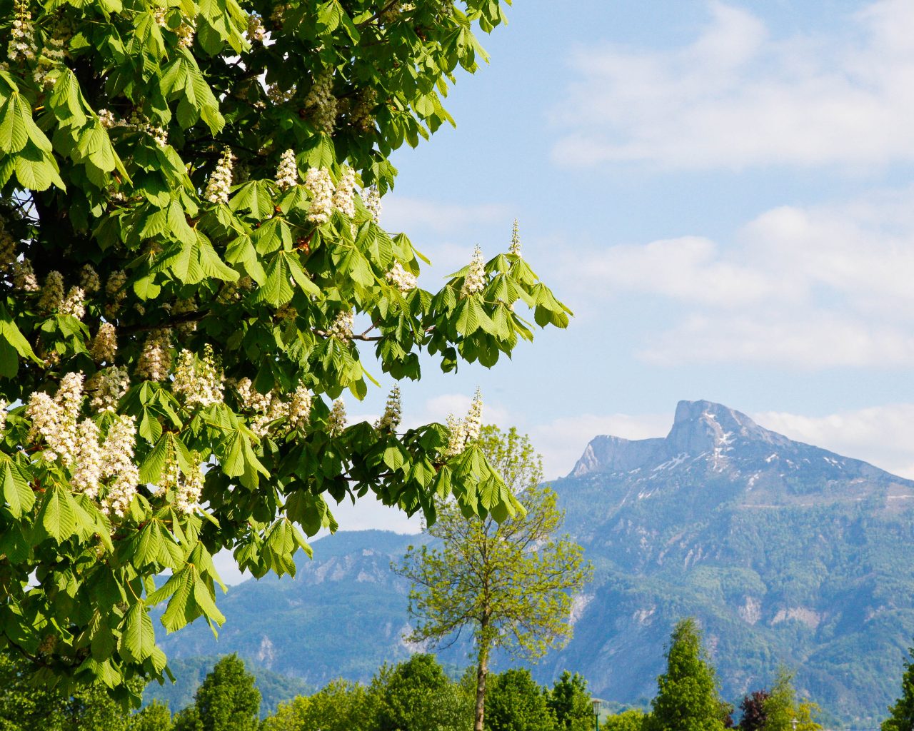 Man bestaunt die Trauungskirche von Maria und Georg von Trapp aus dem Film, schlendert durch das romantische Dörfchen, genießt den Ausblick über den See, hinter dem sich gewaltig die Drachenwand erstreckt, und unwillkürlich hat man das Lied „Climb every Mountain“ im Ohr. Am Liebsten würde man mit Maria und den Kindern, in Kleidern aus Vorhängen genäht, über die Wiesen hüpfen und laut mitsingen. Doch schon neigt sich der Nachmittag dem Ende zu, und es geht zurück nach Salzburg, wo man sich nach Belieben noch einem Spaziergang im Mirabellgarten widmen kann, ganz im Sinne von „The Sound of Music“.