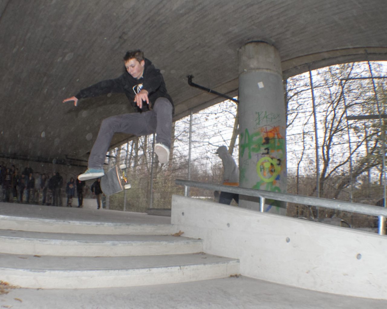 Erstens: der „Outdoor“- Concrete-Park ist quasi 365 Tage im Jahr skatebar. Da der Skatepark unter die Hellbrunnerbrücke gebaut wurde (und seitlich teilweise mit Plexi verkleidet bzw. eingezäunt ist), ist er von der Witterung und Regen sehr gut geschützt.