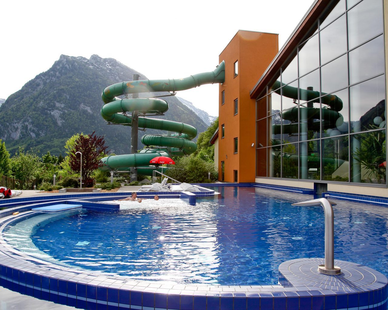 Die Wolkenlandschaft über den Berggipfeln sieht imposant aus, lässt aber die Aussicht auf ungetrübte Badefreuden schwinden. Last Exit, um den Badetag zu retten: Ein Thermenbesuch. Viel haben wir vom Aqua Salza schon gehört, jetzt wird es Zeit, die Wellnessoase mal zu testen.
