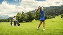 Im Golfclub Lungau/Katschberg geht’s auf über 1.000 Metern Höhe zur Sache. Die Anlage zählt nicht umsonst zu den schönsten und anspruchsvollsten Plätzen Österreichs. Wasser kommt hier immer wieder mal ins Spiel. Schwierig wird es zum Abschluss an der letzten der 18 Bahnen (Par 5, 479 Meter). Rechts ein wunderschöner Teich, links tiefes Rough – und auf der anderen Seite des Wassergrabens ein Inselgrün. Da ist noch einmal volles Konzentration und Präzision gefragt, bevor es an Loch 19 gesellig wird.