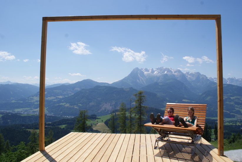 Werfenweng im Herzens des Pongaus, Teil der Alpine Pearls und Paradeort für sanft mobilen Urlaub, wartet seit Sommer 2017 mit einer neuen Attraktion auf. Mit der 8er-Kabinenban Rosnerköpfl geht es direkt vom Ort aus hinauf zur Bergstation. Und hier beginnt auch schon das Abenteuer. Zunächst ist schon einmal die Aussicht auf die umliegende Bergwelt atemberaubend schön. Für Postkartenmotiv pur sorgen auch die beiden Holzvierecke, die dem Panorama den passenden Rahmen geben. Für eine kulinarische Auszeit sorgt das gleichnamige Restaurant, das seine Gäste mit einem jungen, motivierten Team nach allen Regeln der Kochkunst verwöhnt.