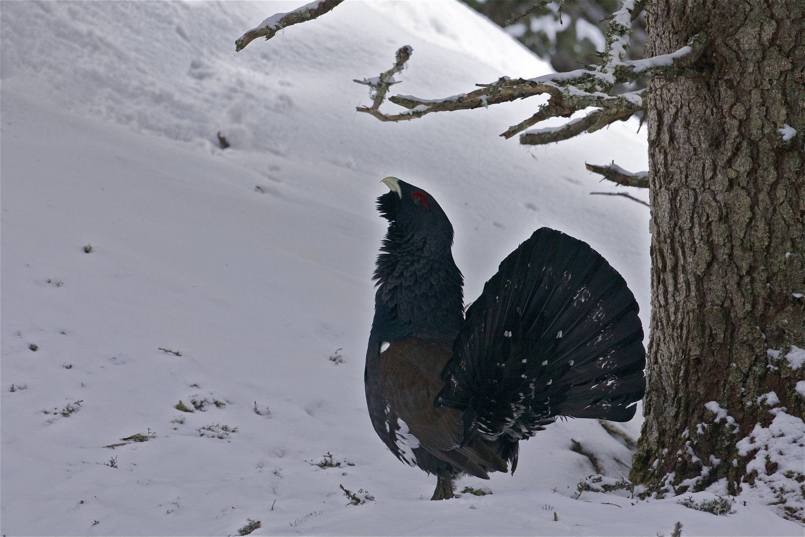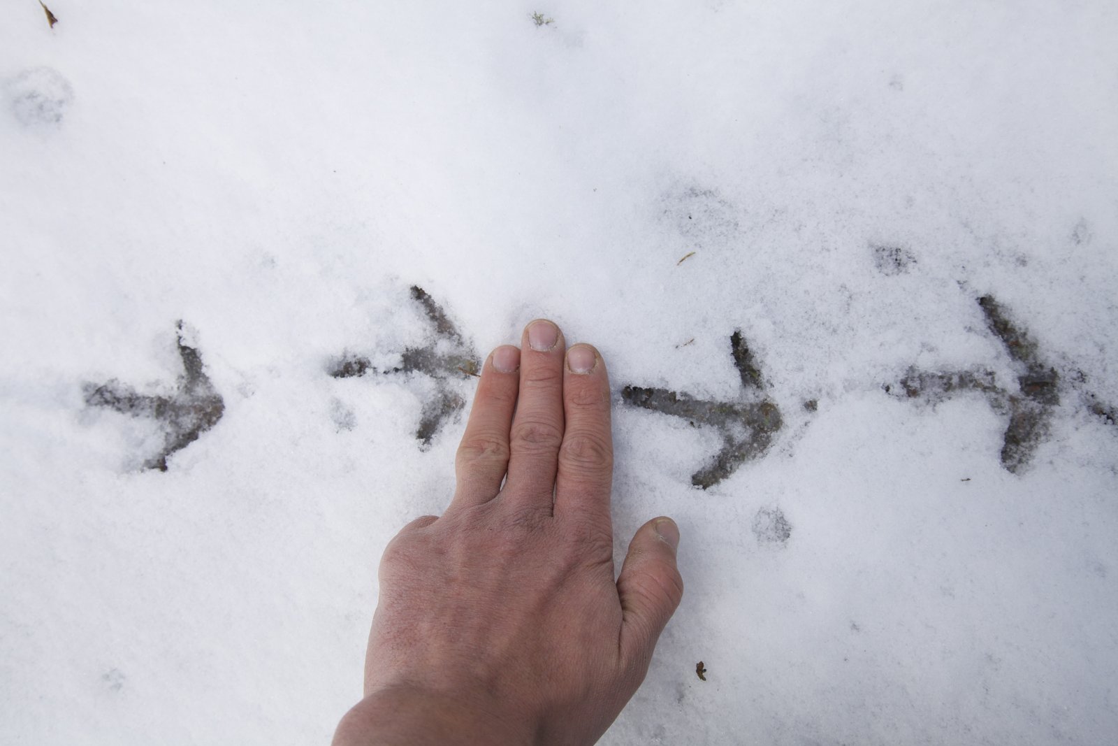 Selten zu Gesicht bekommt man allerdings die Pfeil-ähnliche Fährte des Auerhahns in den Nadel- und Mischwäldern des Hochgebirges. Das Trittsiegel ist rund 10 cm lang und etwa 9 cm breit mit drei Vorderzehen und einer Hinterzehe. Sie lassen sich im Winter, ebenso wie das Birkwild – das allerdings weit ober der Baumgrenze beheimatet ist, einschneien oder vergraben sich im lockeren Pulverschnee, und bleiben für mehrere Stunden in diesen Schneehöhlen. Darum Hunde an die Leine, auf den Wegen bleiben und Augen auf beim nächsten Winterspaziergang, denn am Wegesrand finden sich mit Sicherheit Fährten und Spuren, die es zu deuten gilt.