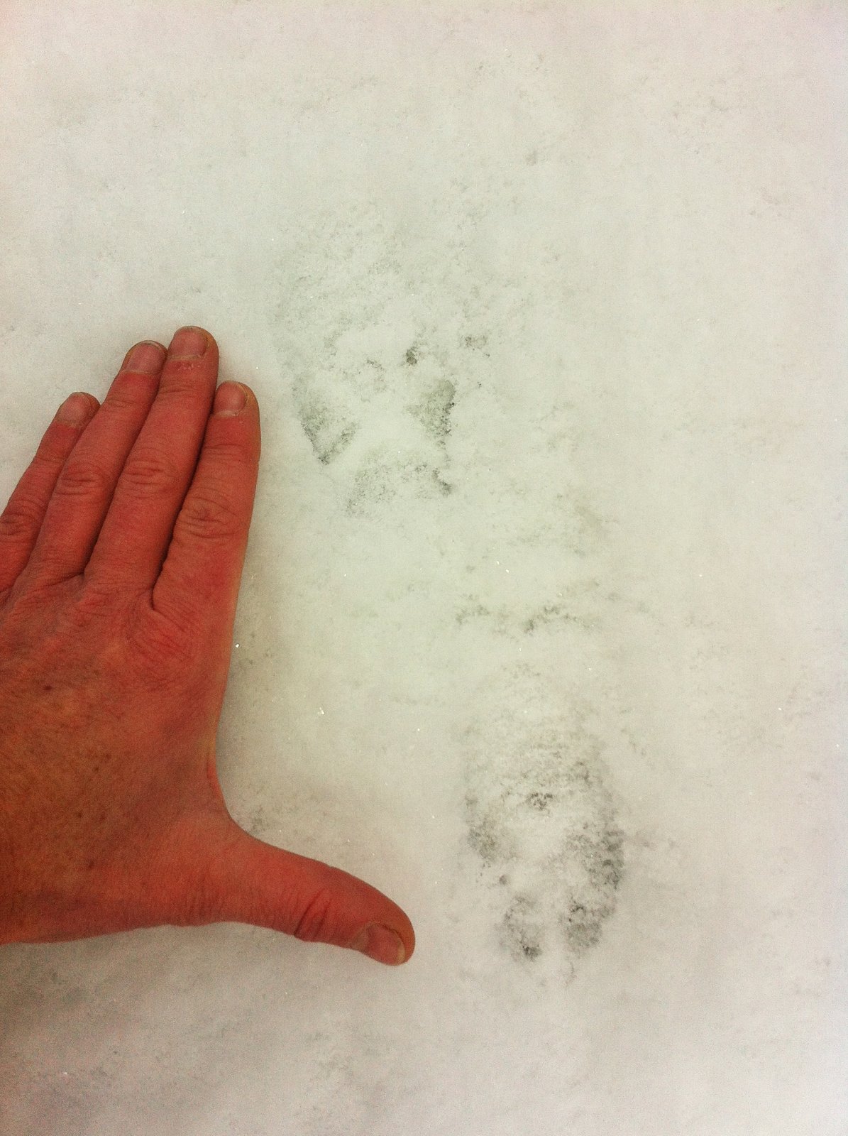 … und ich weiß wohin du im Schnee gelaufen bist. Die Fuchs-Spur ähnelt der eines Hundes, da der Fuchs zu den hundeartigen Beutegreifern zählt. Deutlich sind die Krallen im Abdruck zu sehen, somit unterscheidet er sich von der Spur einer Katze. Die einzelnen Abdrücke sind bei einer schnellen Fortbewegung schnurgerade wie auf einer Perlenkette hintereinander aufgereiht. Bei diesem „Schnüren“ tritt der Fuchs mit der Hinterpfote genau in den Abdruck der Vorderpfote. Bei einer flüchtenden Fuchs-Spur sieht man alle vier Pfoten-Abdrücke. Die Spur eines kleineren Hundes ist sehr ähnlich, jedoch sind die Trittballen der beiden vorderen Zehen beim Fuchs vorgeschoben, und liegen vor denen der Außenzehenballen.