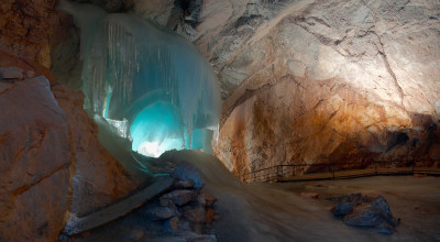 Auch im Sommer warm anziehen muss man sich, wenn man zwischen April und Oktober die sagenhafte Eisriesenwelt besichtigt. Die größte bekannte Eishöhle der Welt erstreckt sich über 40 Kilometer ins Berginnere. Für die Öffentlichkeit zugänglich ist ein gut 1 Kilometer langer Weg, auf dem man staunend in die faszinierende Eiswelt eintauchen kann.