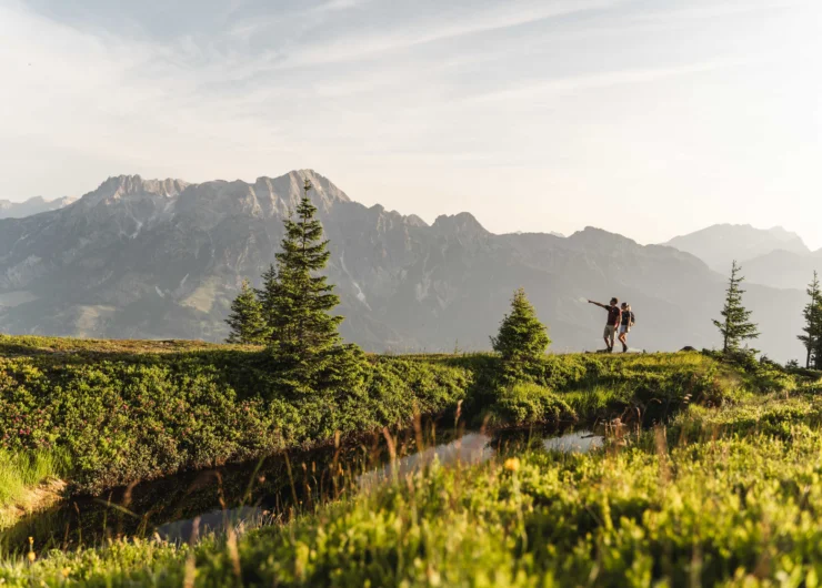 The rugged rock formations of the Steinernes Meer and the Leoganger Steinberge make alpinists’ hearts beat faster. At the same time, gentle grass mountains offer relaxed routes for connoisseurs. Instead of numbers, “Einfach Wandern” focuses on the essentials: walking, looking, breathing deeply. Along many routes, special benches, forest swings and photo points invite you to change perspective. Practical too: pole sharing at selected starting points.