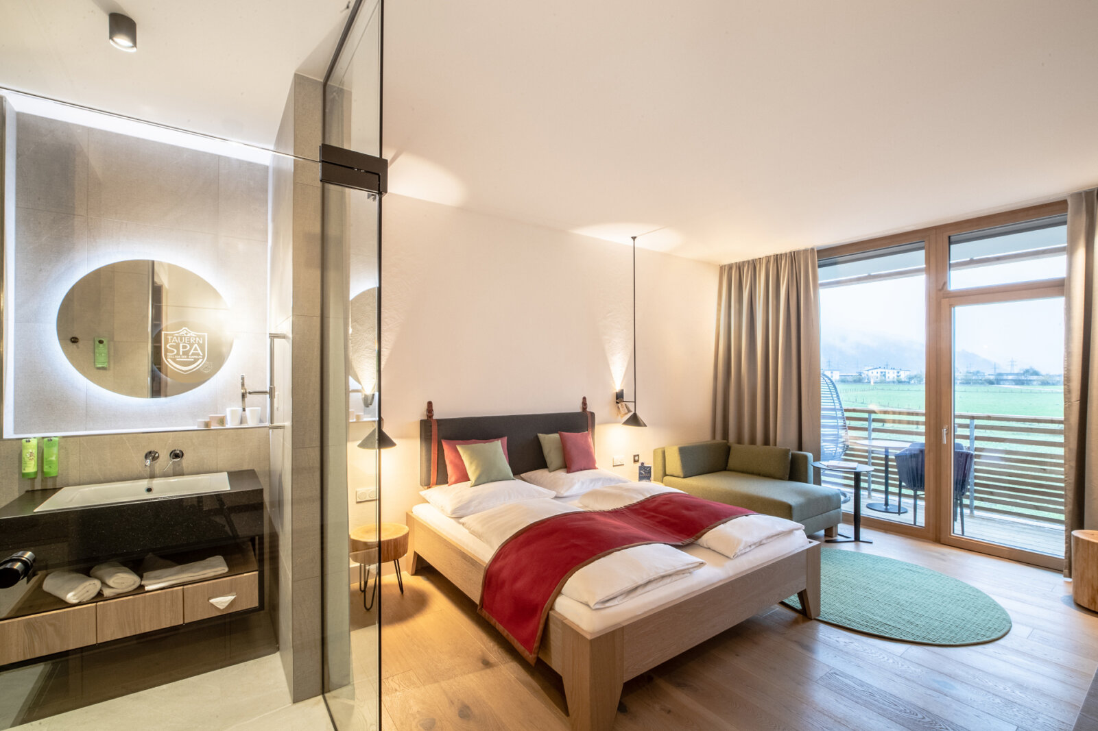 Guests can enjoy a spacious water and sauna world covering over 20,000 m² with a variety of pools, saunas, and steam baths, as well as exclusive panoramic areas with a glass skyline pool. The 220 modern and nature-inspired rooms and suites offer impressive views of the Hohe Tauern mountains, the Pinzgau grass mountains, or the glacier.