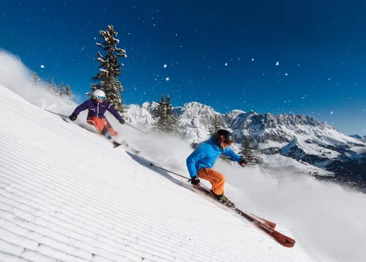 Quando scende la neve, l’Hochkönig è sempre là, con le sue cime e creste affilate. Lo si vede bene dall’arrivo della cabinovia Karbachalm, prima di calzare gli sci e partire alla scoperta di 150 km di piste tra Mühlbach, Dienten e Maria Alm (che diventano 860 km nel comprensorio sciistico Ski amadè). Ma i panorami mozzafiato non mancano nemmeno per chi preferisce esplorare a piedi i sentieri invernali (85 km) o fare gite con le ciaspole o gli sci di fondo.