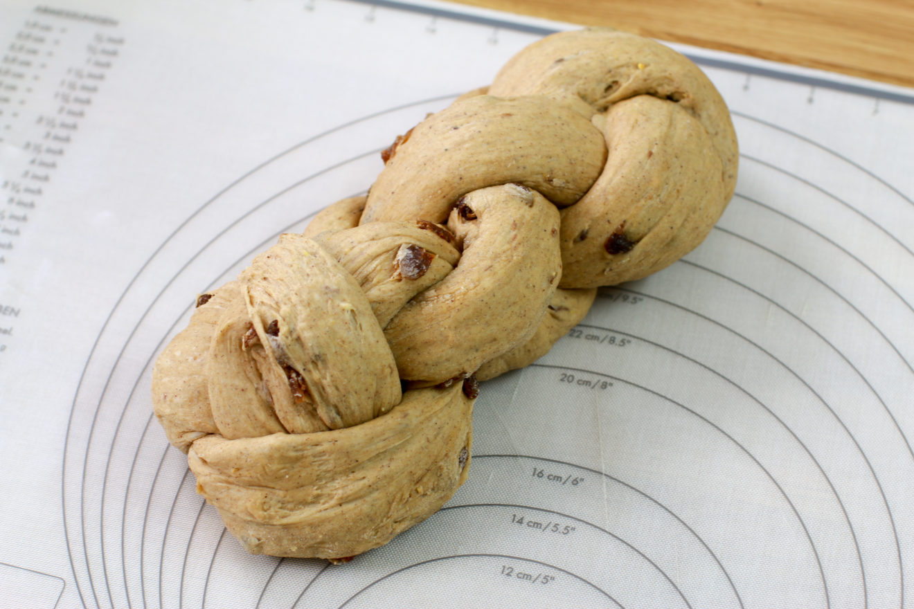 - Striezel o czterech splotach jest gotowy. Aby dobrze wyrósł w piekarniku, odstaw go ponownie przykryty ściereczką.